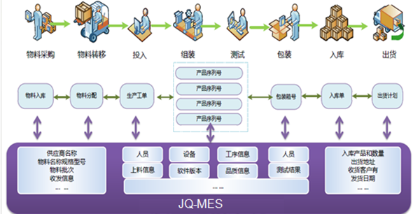品质管理:MES跟踪原材料进厂到成品入库的整个生产流程,对产品原料、生产设备、操作人员、工序批次等数据实时采集,为产品的使用、改进设计及质量控制提供依据;根据检测结果确定产品问题、提供相应的决策支持。